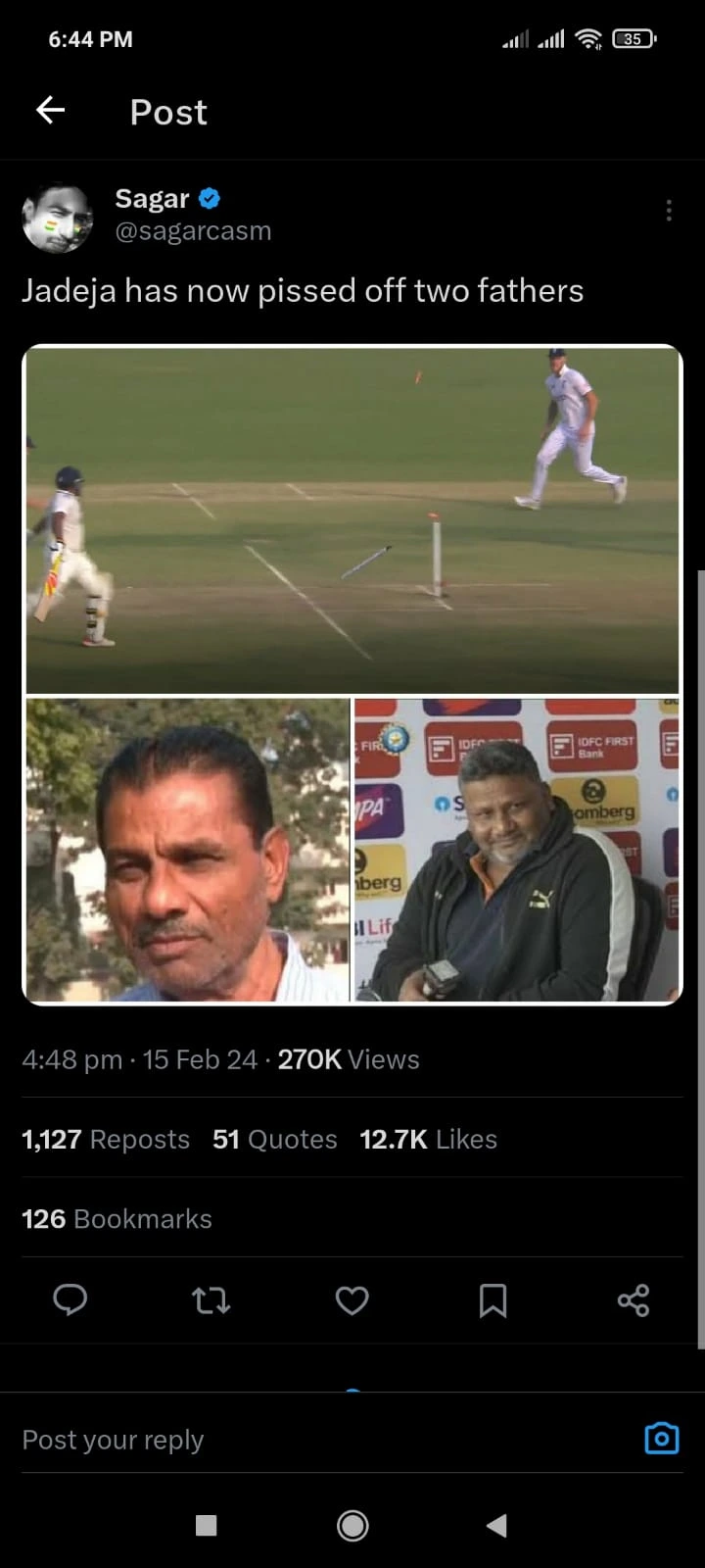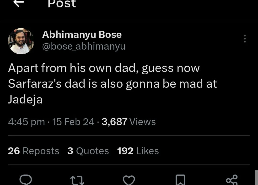 Responding to Jadeja’s signal, Sarfaraz Khan, without watching much of the ball or the fielder, trusted Jadeja’s call and started running. However, Jadeja withdrew his call and gestured to send Sarfaraz back. But it was too late by then as Mark Wood had made a direct hit, catching Sarfaraz a couple of meters away from the stumps.