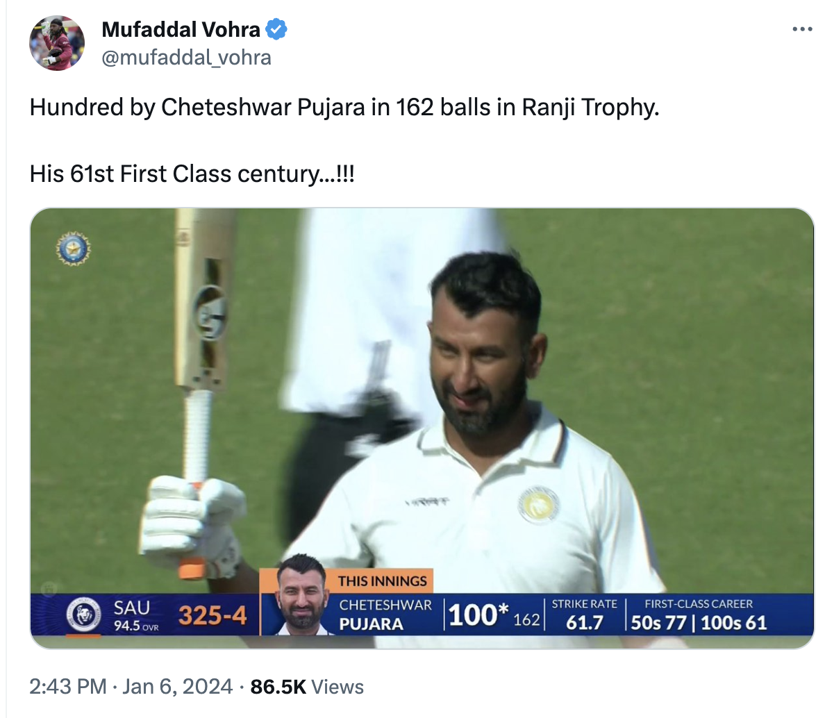 Fans React As Cheteshwar Pujara Scored A Century In Ranji Trophy 2024
