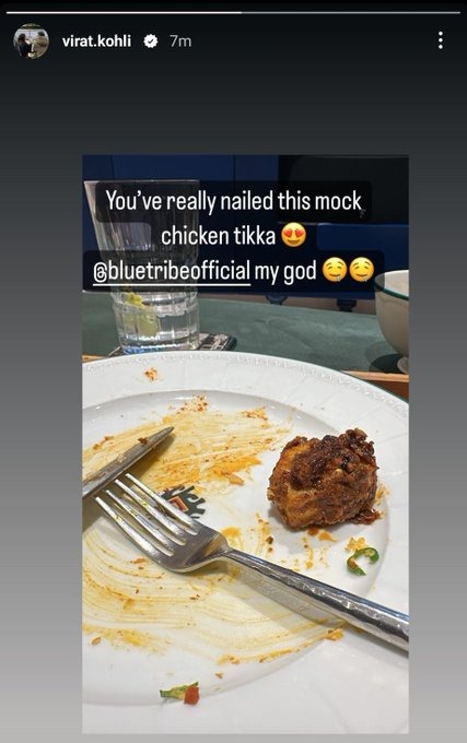 Recently, Virat Kohli’s Instagram story sparked a social media frenzy. The cricketer shared a captivating image of his meal, featuring a delectable dish tagged with @bluetribeofficial. The caption read, “you have really nailed this mock chicken tikka.” However, a misconception emerged, suggesting that Kohli, a staunch vegetarian, was consuming chicken. Let’s set the record straight.