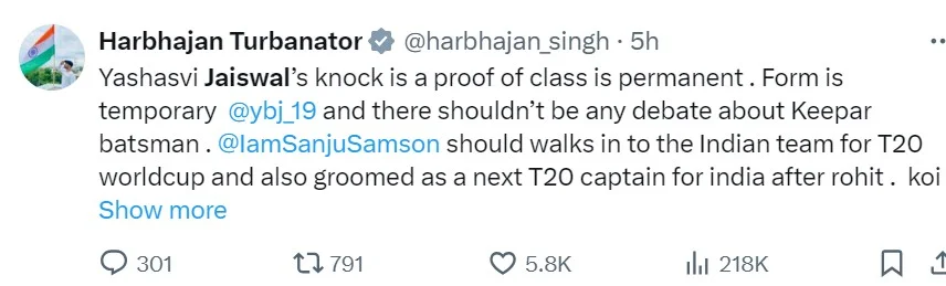 Later after the game, Yashasvi Jaiswal shared his thoughts on his innings, expressing his joy at his performance. He shared that his focus is on playing proper cricketing shots. He also expressed gratitude towards the team management and captain Sanju Samson for their support. Speaking to broadcasters, he said: