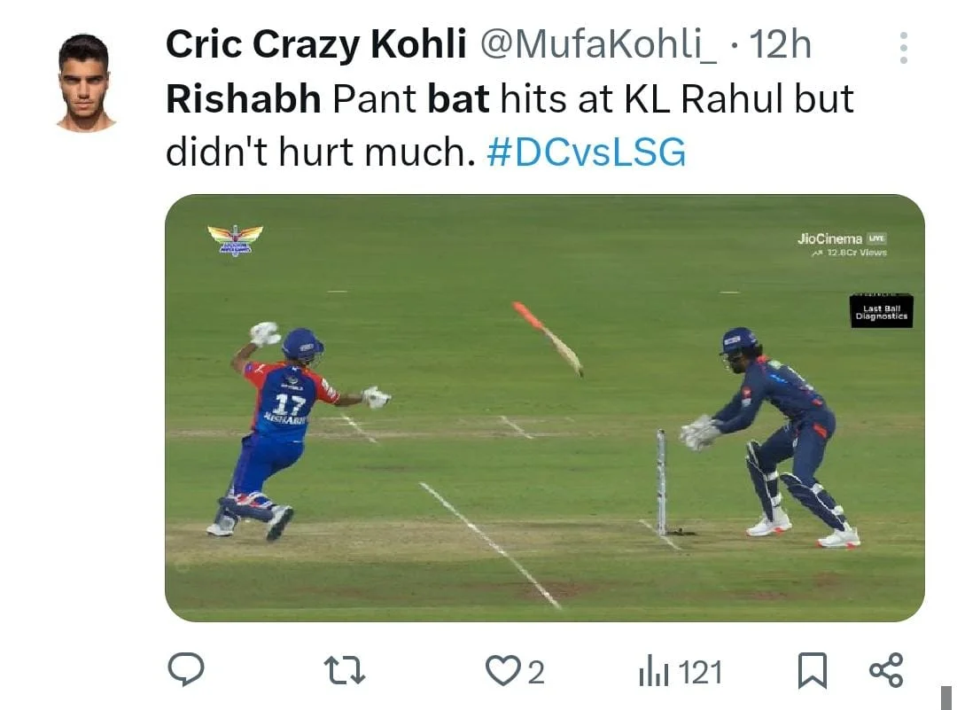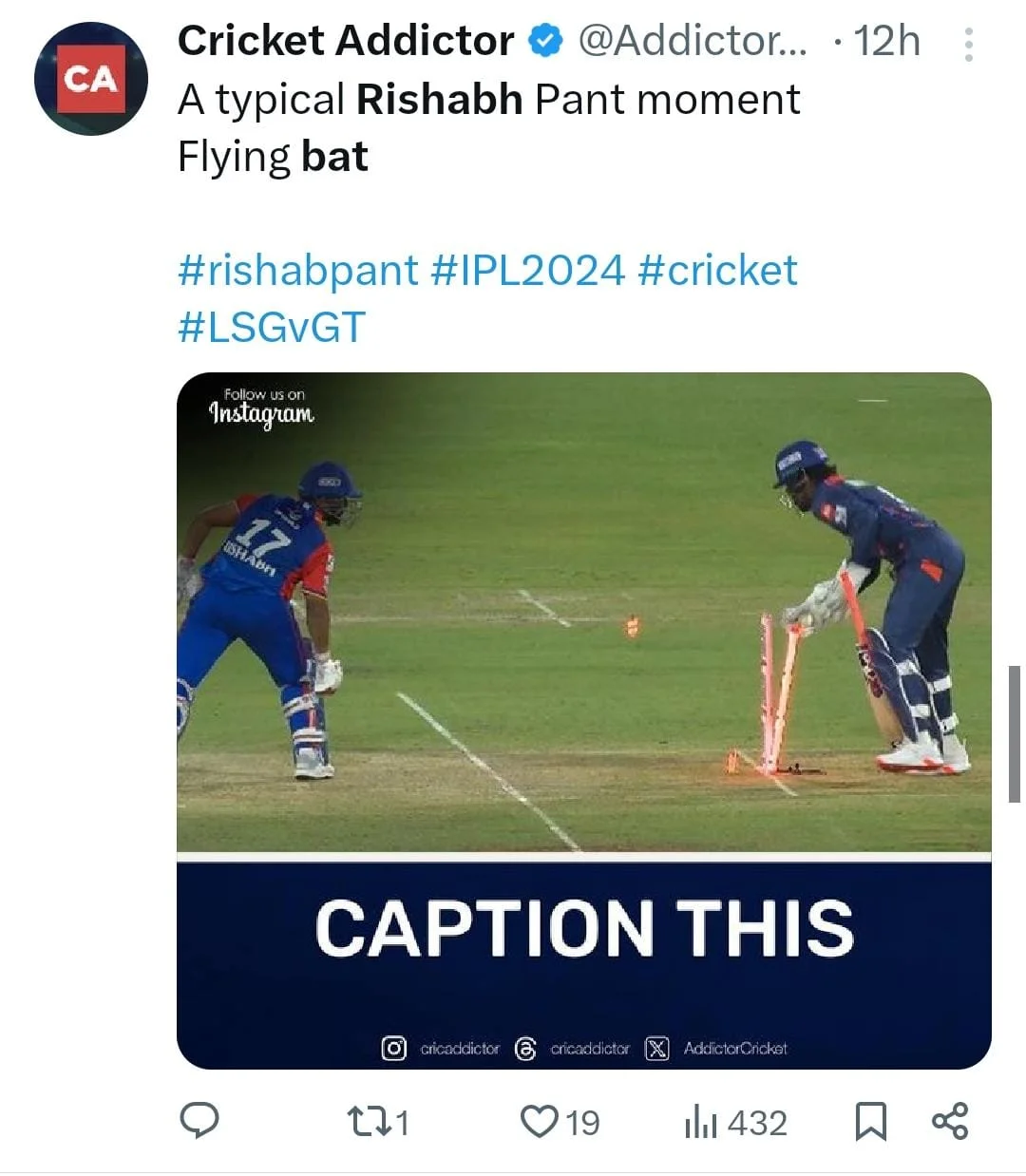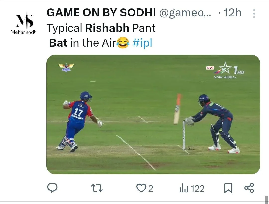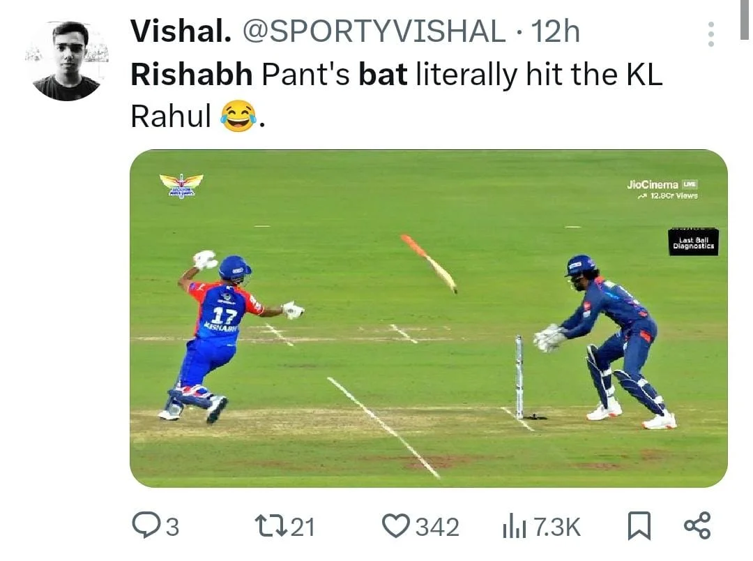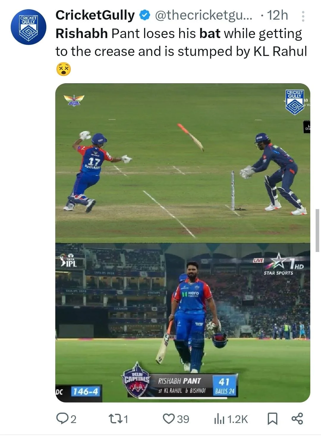 In the 26th match of the 2024 Indian Premier League (IPL), Delhi Capitals (DC) captain Rishabh Pant was involved in a dramatic dismissal against KL Rahul’s Lucknow Super Giants (LSG) at the Bharat Ratna Shri Atal Bihari Vajpayee Ekana Cricket Stadium in Lucknow on Friday, April 12.