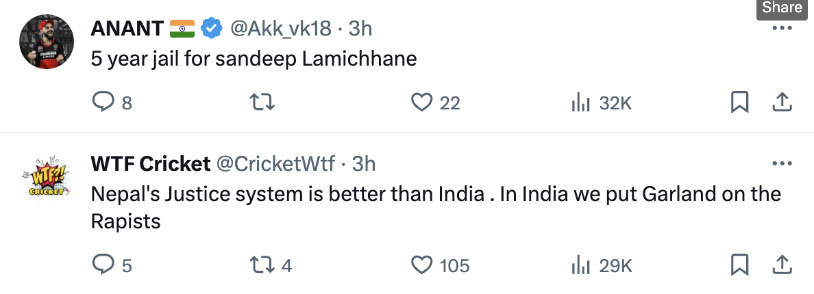 Fans React As Sandeep Lamichhane Found Guilty Of Raping A Minor Girl