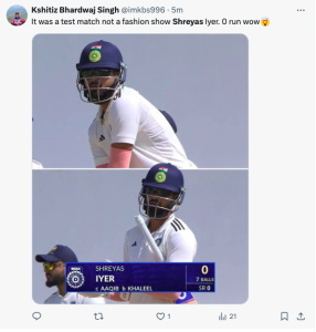 Shreyas Iyer’s decision to bat with sunglasses might go down in cricket lore, not just for the act itself but for the reaction it provoked. While some fans admired his style, others found it ripe for trolling, especially when his performance didn’t match the bold statement. Whether this becomes a trend or remains a one-off incident, Iyer’s sunglasses moment has certainly added a quirky chapter to cricket’s rich tapestry of on-field anecdotes. In the end, whether it was for comfort, style, or just a bit of fun, Iyer managed to capture the cricketing world’s attention, proving once again that in cricket, as in life, it’s often the small, unexpected moments that leave the most lasting impressions.