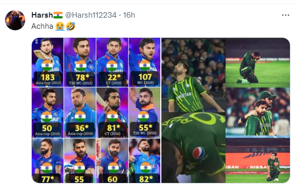 One Pakistan fan tried to troll Gill with an image of Naseem Shah and captioned the picture “Shubhman Gill’s Grandfather. Circa 1953.” This Pakistani fan was then put back in his place by Indian fans who used images of Virat Kohli and Kuldeep Yadav to troll back the Pakistani team.