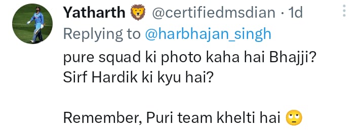 For the unversed, recently, Harbhajan on a day when the Indian cricket team lost the WTC Final 2023 to Australia by 209 runs, Harbhajan took a fan to task when he implied that former captain MS Dhoni had won the T20 World Cup and defeated Australia on his own. The fan wrote: