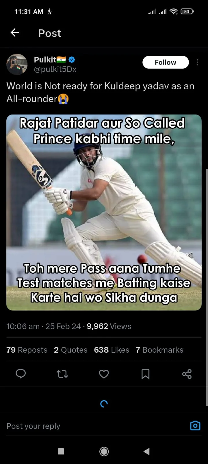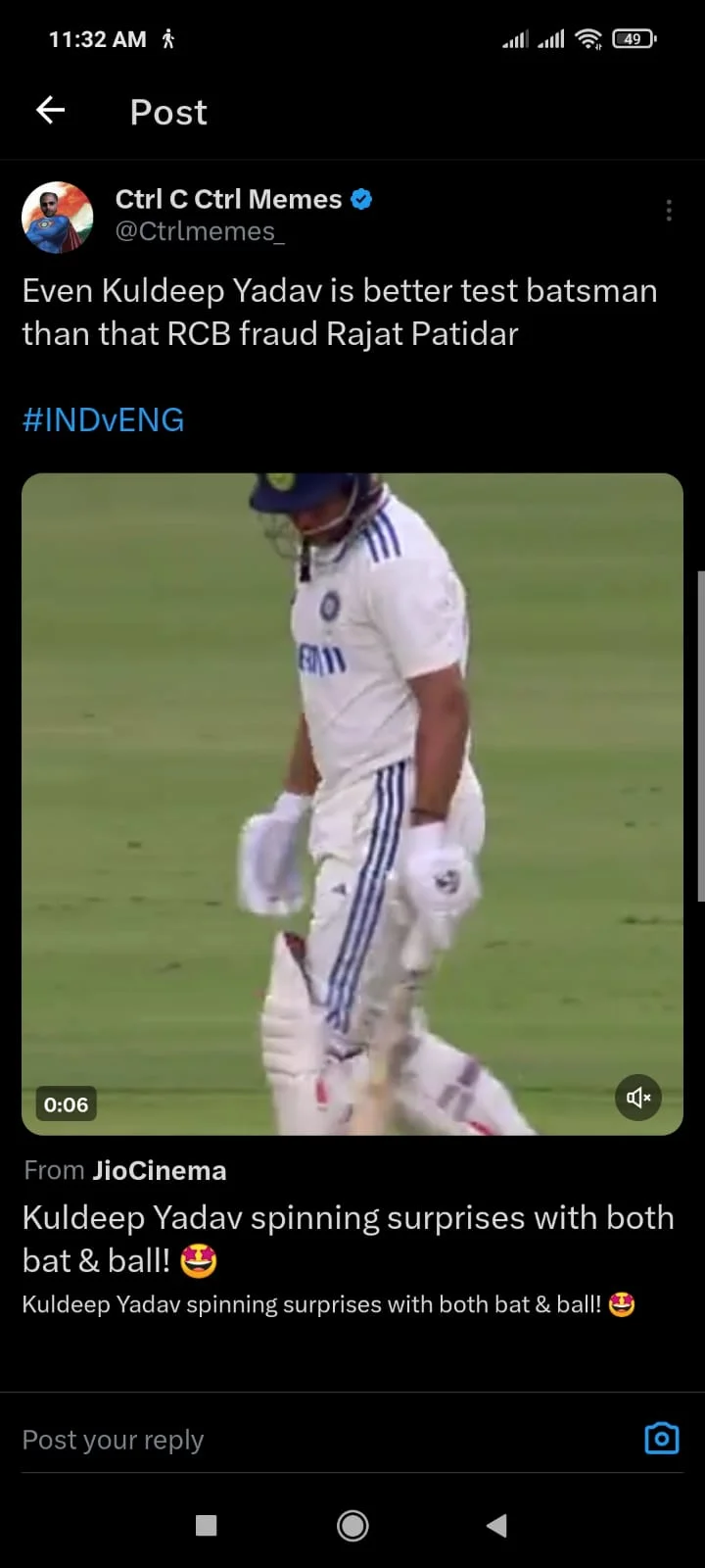 The ball hit his show and rolled onto the stumps. Kuldeep Yadav was shocked, and so was the Indian dressing room, because he had been batting so well, and a lack of fortune cost him his wicket. Nonetheless, fans on Twitter applauded this impressive batting effort from Kuldeep, who helped India cross 250 along with Jurel.