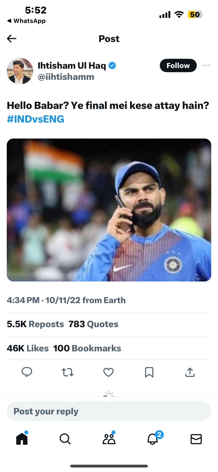 The cricket rivalry between India and Pakistan extends beyond the playing field, transcending into social media. Last year, during the T20 World Cup, a Pakistani journalist took a jibe at India, posting a photo of Virat Kohli with his mobile and a taunting tweet that read, “Hello Babar? Ye final mei kese attay hain? #INDvsENG.” The tweet, intended to mock India’s exit from the tournament, became a source of amusement for Pakistani fans.
