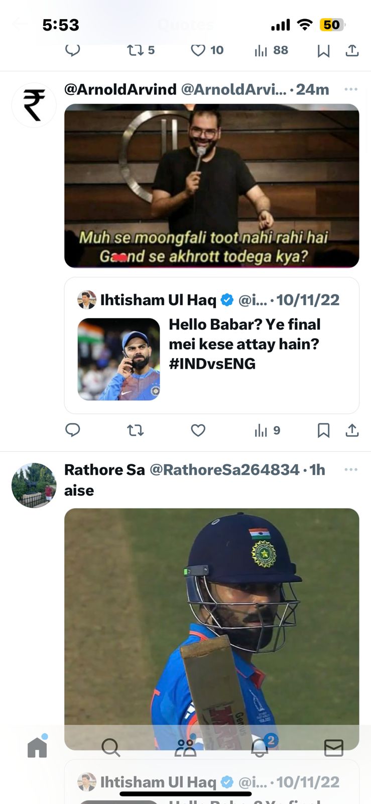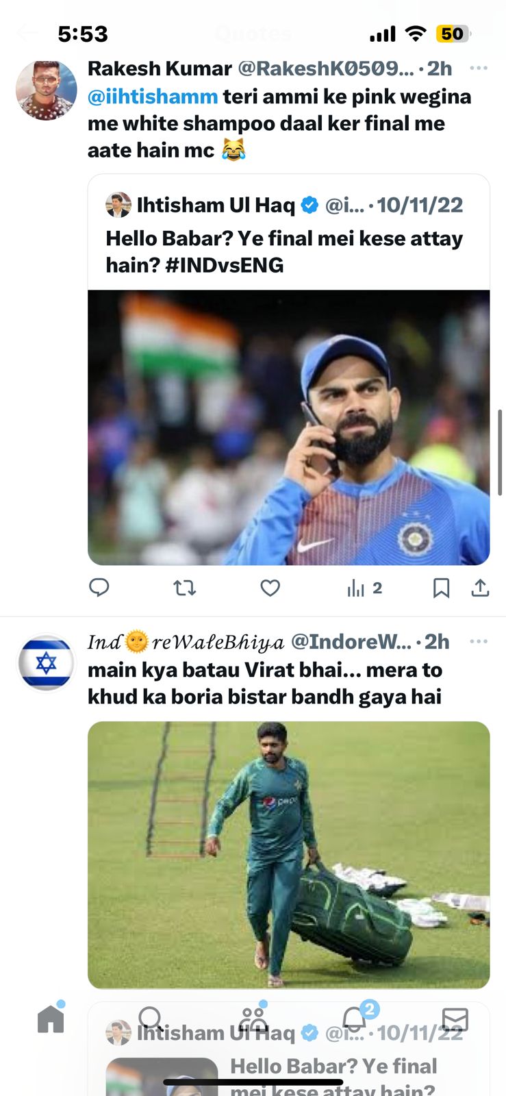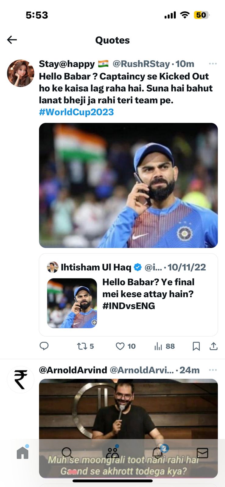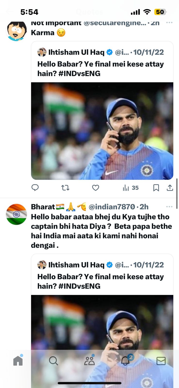 The cricket rivalry between India and Pakistan extends beyond the playing field, transcending into social media. Last year, during the T20 World Cup, a Pakistani journalist took a jibe at India, posting a photo of Virat Kohli with his mobile and a taunting tweet that read, “Hello Babar? Ye final mei kese attay hain? #INDvsENG.” The tweet, intended to mock India’s exit from the tournament, became a source of amusement for Pakistani fans.