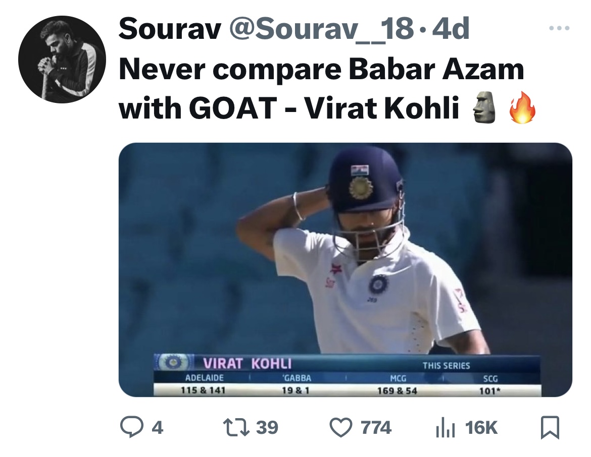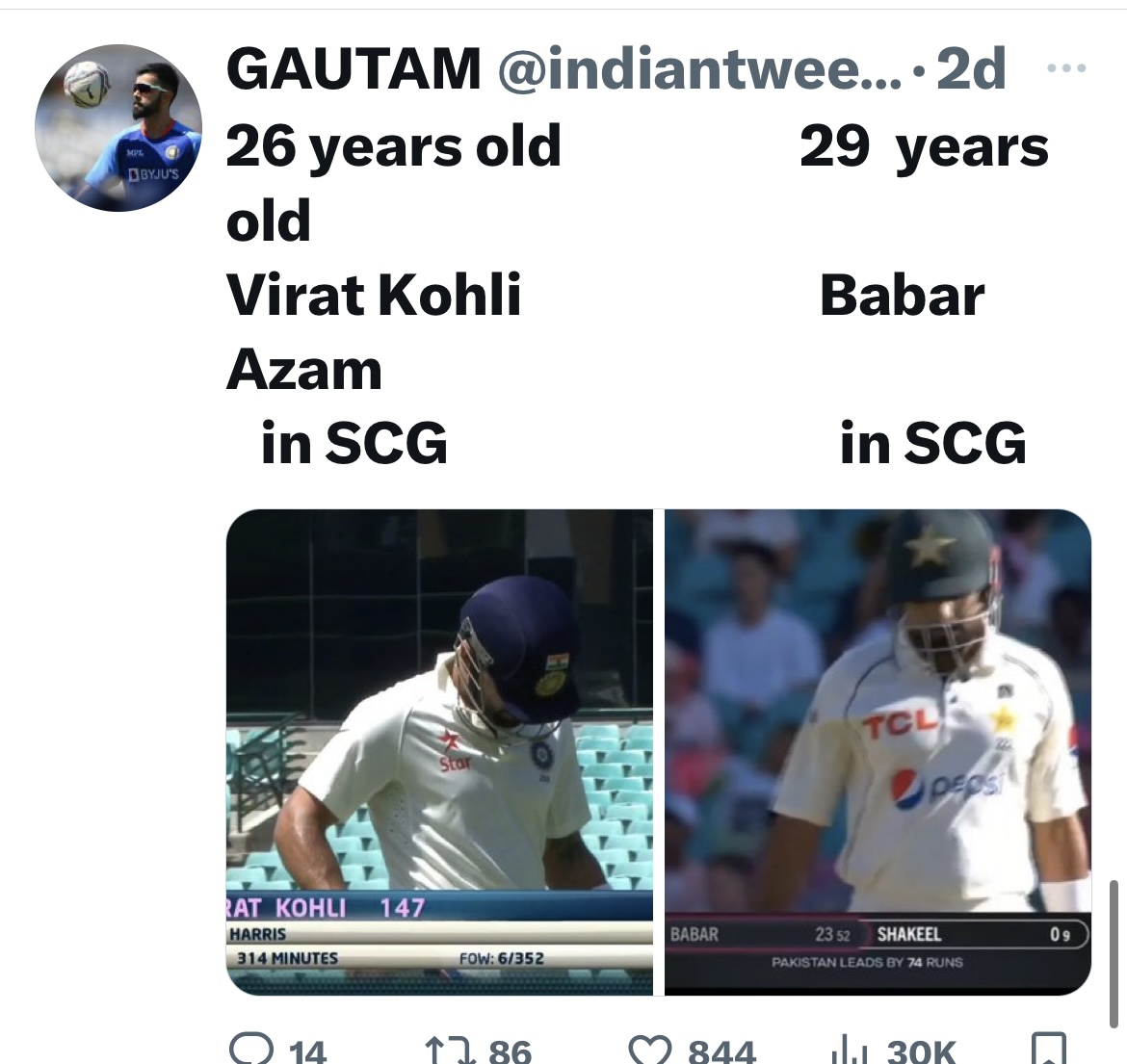 While coming to Babar, he has not made his mark in the ICC events. He has had lacklustre performances in the Asia Cup 2023 and the ODI World Cup 2023. Now, in the recently concluded test series between Australia and Pakistan down under, Pakistan has suffered a 3-0 whitewash and Babar has failed yet again. He ended 2023 with no half century in test cricket. Even in the six innings in the test series against Australia, Pakistan’s premier batter has not even scored a fifty. Indian fans have started trolling Babar Azam and hit back at Pakistani fans for comparing Babar to Kohli.