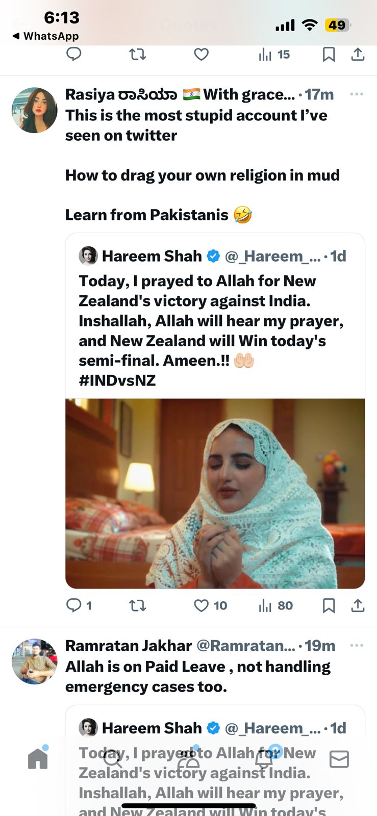 She wrote, “Today, I prayed to Allah for New Zealand’s victory against India. Inshallah, Allah will hear my prayer, and New Zealand will Win today’s semi-final. Ameen.!! #INDvsNZ”