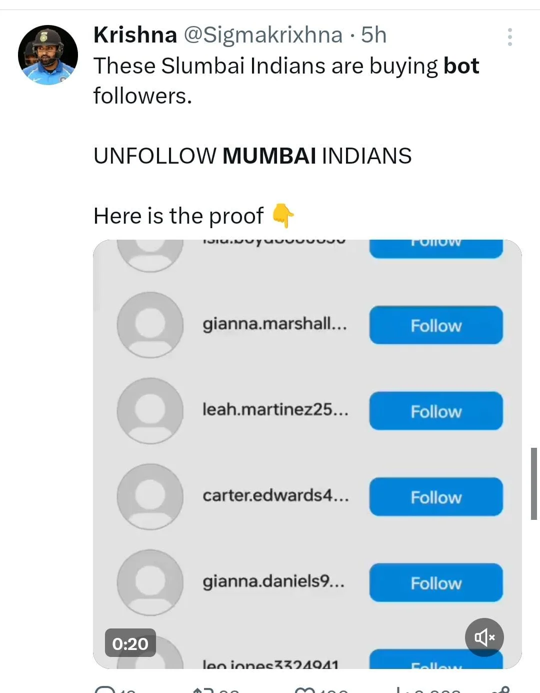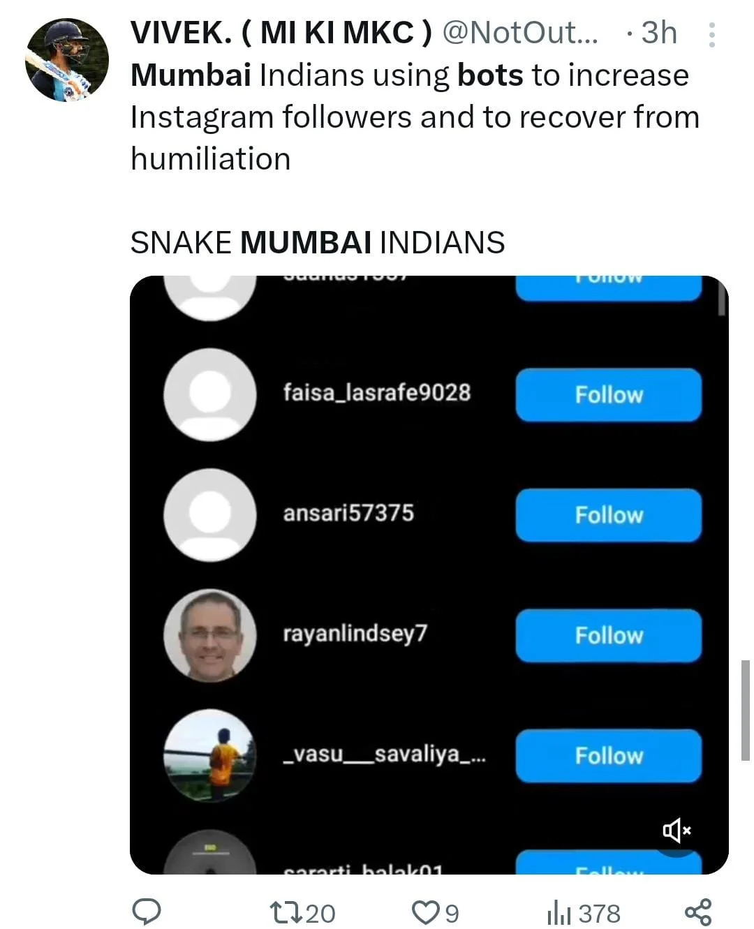 Mumbai Indians using bots to increase Instagram followers after humiliation by Rohit Sharma fans 😂 pic.twitter.com/vEwQn1XzOT
