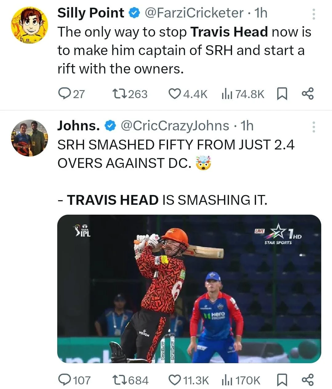 Fans React To Travis Head’s Powerful Knock Of 89 Runs Against DC