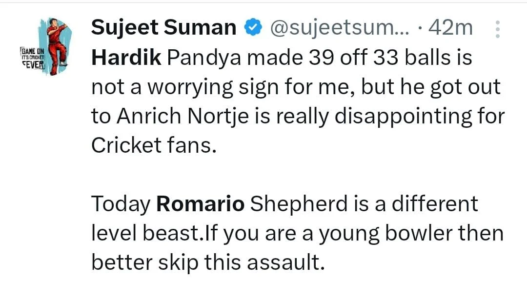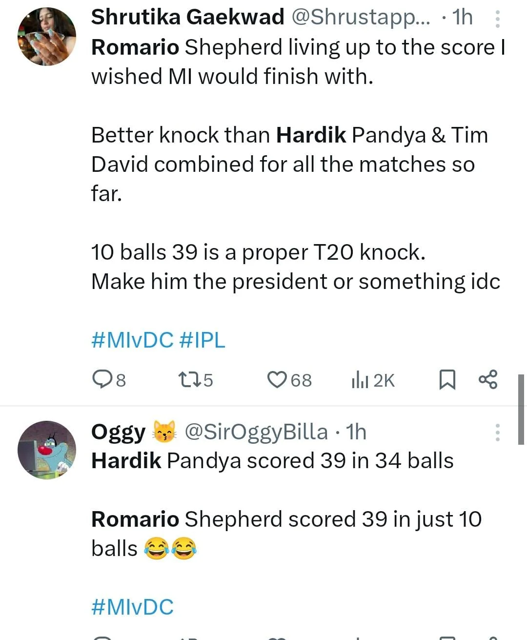 Fans Trolled Hardik Pandya After Romario Shepherd’s Fiery Knock vs Delhi