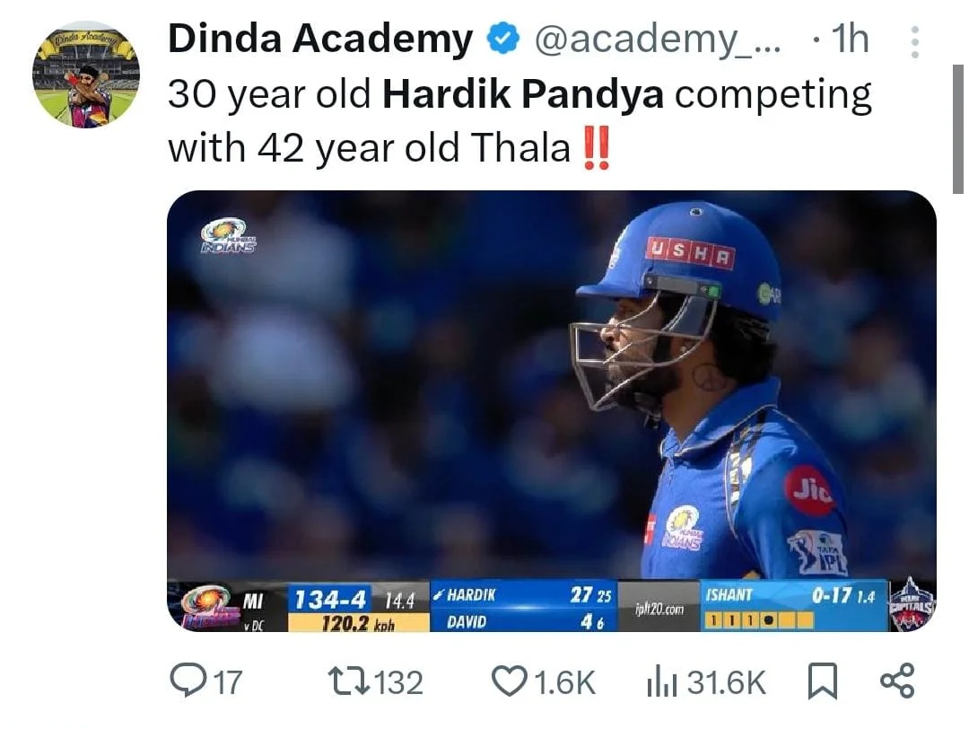 Mumbai Indians’ captain Hardik Pandya had a disappointing performance with the bat in the current IPL 2024 match against Delhi Capitals.