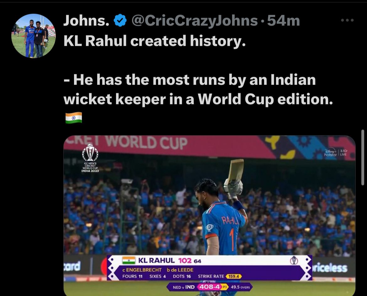 The match against the Netherlands wasn’t just about KL Rahul’s record-breaking century; it was a day when the Indian batting lineup demonstrated their remarkable abilities. In addition to KL Rahul’s historic feat, Shreyas Iyer also etched his name by scoring a century.