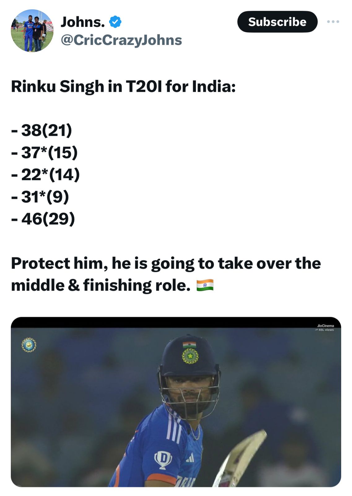 The impact of Rinku Singh’s innings transcended the cricket field, echoing through the virtual world of social media. Fans took to platforms like Twitter, Facebook, and Instagram to express their admiration for Singh’s exceptional performance.
