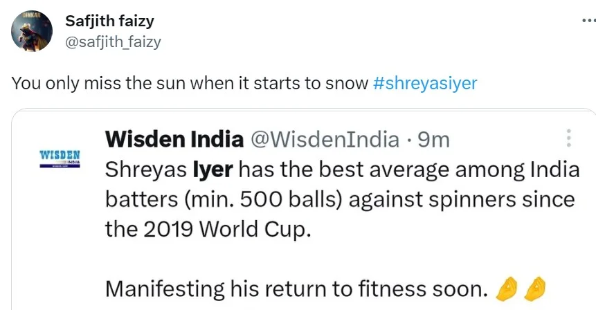 Notably, Shreyas Iyer had suffered a niggle during the warm-up session on Sunday ahead of India’s match against Pakistan. He didn’t travel with the team to the R Premadasa Stadium in Colombo, BCCI added. The BCCI had revealed:
