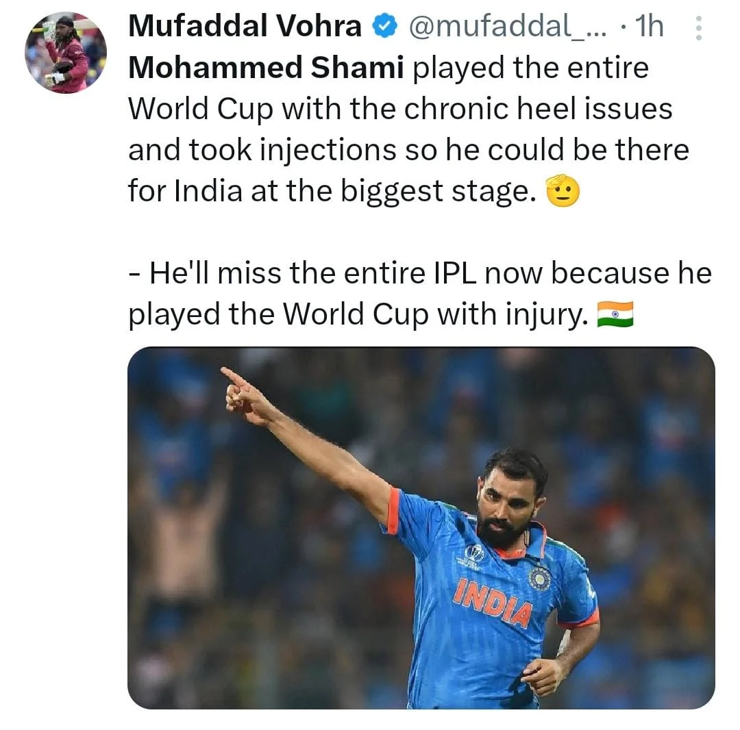 Mohammed Shami hasn’t played since the 2023 World Cup final against Australia, where India faced a tough defeat. He was the top wicket-taker in the tournament, taking 24 wickets in seven matches with an excellent average of 10.70.