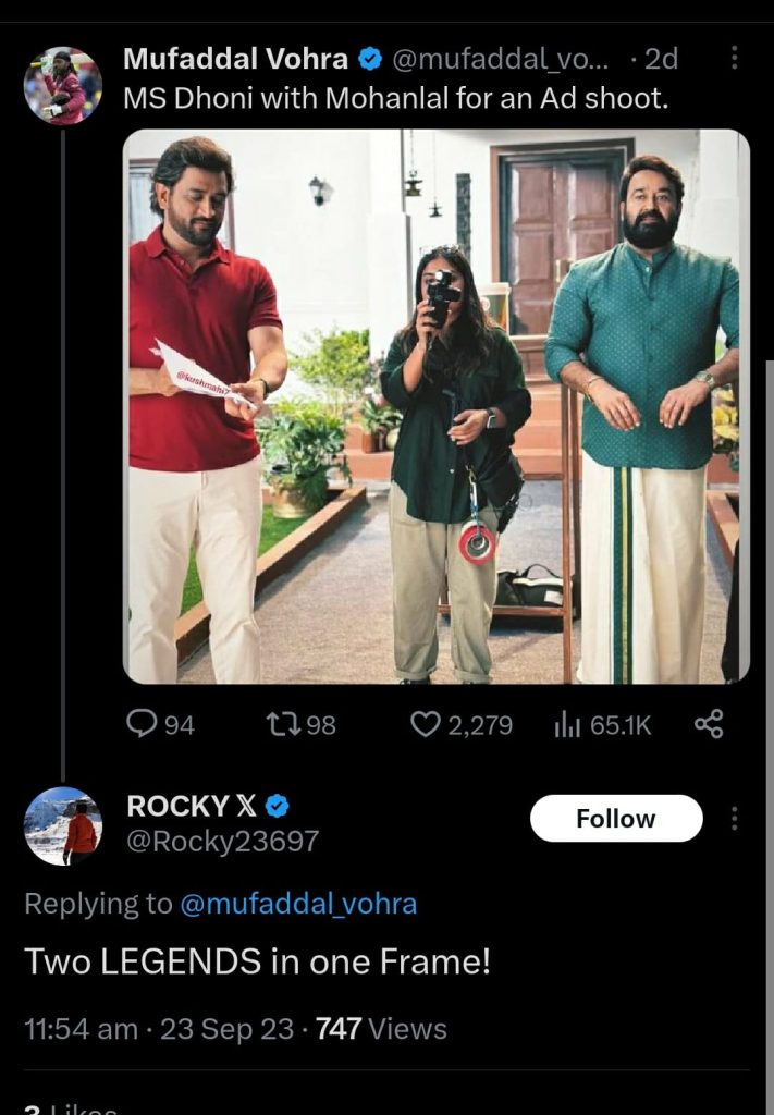 The pictures of MS Dhoni and Mohanlal from the ad shoot went viral on social media with fans hailing the duo for their stardom.