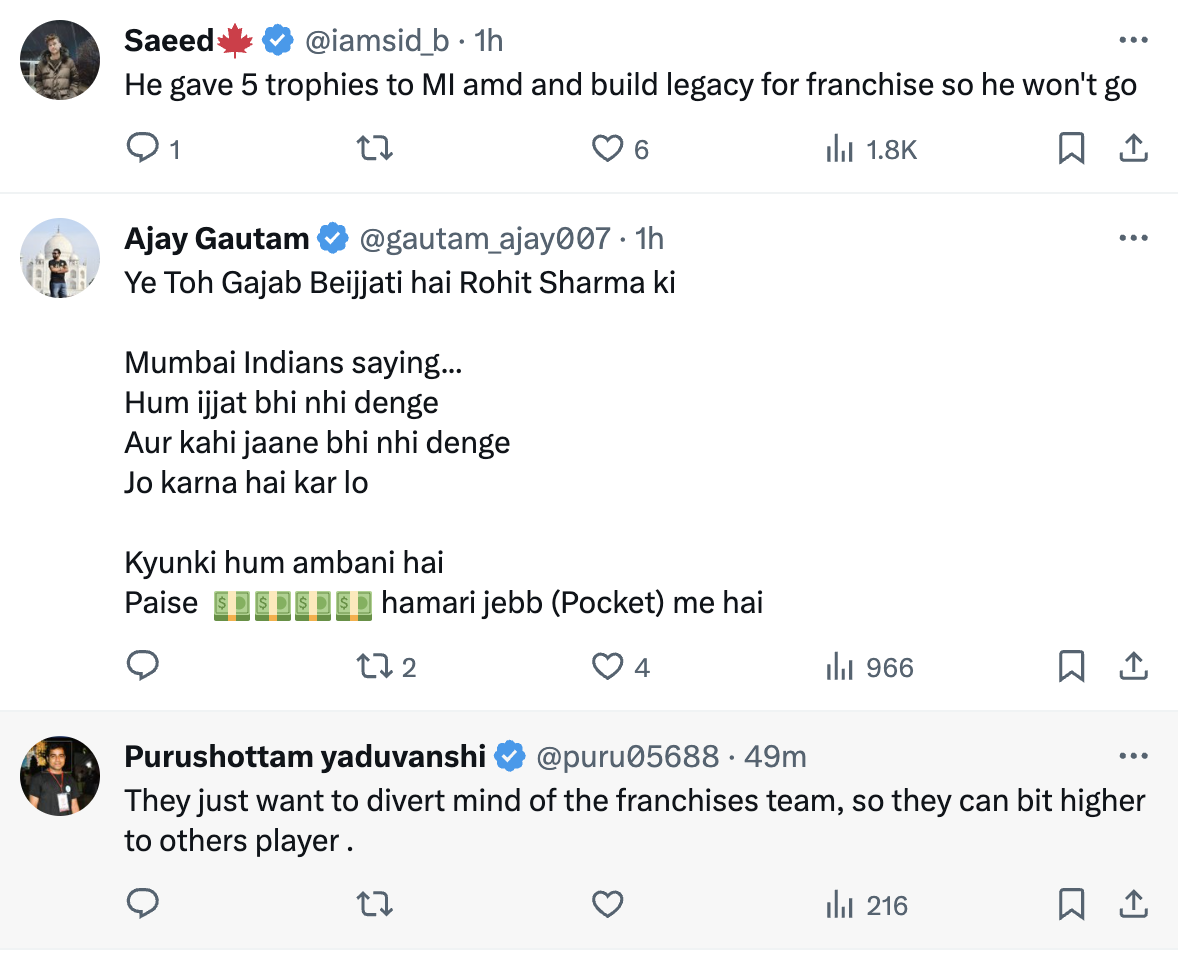 Mumbai Indians, caught in the crossfire of fan disappointment, faced a barrage of criticism on social media following the announcement. The decision to relegate Rohit Sharma to a batting-only position has not resonated well with supporters who have vociferously voiced their opinions online. The Mumbai Indians’ social media handles have been inundated with comments expressing displeasure and skepticism about the team’s strategic choices.