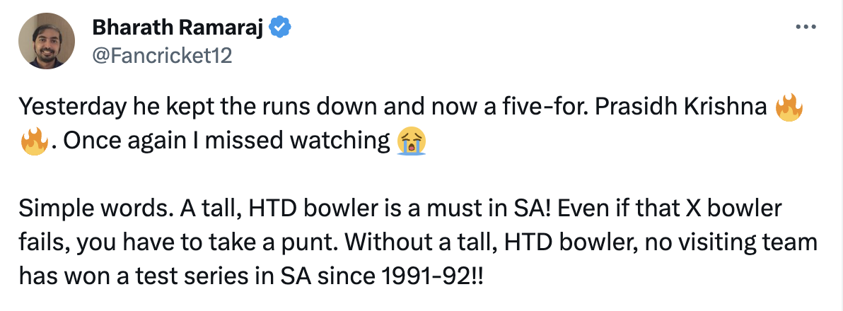 The Indian fans, erupted in joy and anticipation on social media following Prasidh Krishna’s stellar show. A surge of reactions flooded various platforms, highlighting the significance of his contribution. Fans lauded his skill, determination, and the crucial wickets he claimed, creating a buzz that resonated beyond the cricketing fraternity.