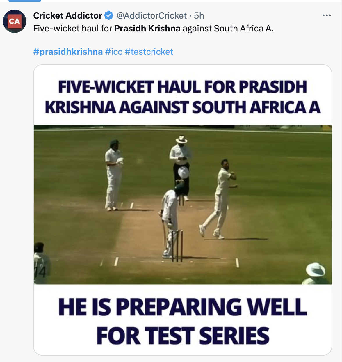 Krishna’s journey from the T20 setback to the Test spotlight took a significant turn during his stint with India A. In the first unofficial Test against South Africa A in Potchefstroom, Krishna emerged as the standout performer on December 13. Displaying his mettle, he scalped five crucial wickets, including the prized scalp of centurion Jean du Plessis. His remarkable figures of 43/5 played a pivotal role as India A bowled out South Africa A for 319 runs in 98.1 overs.
