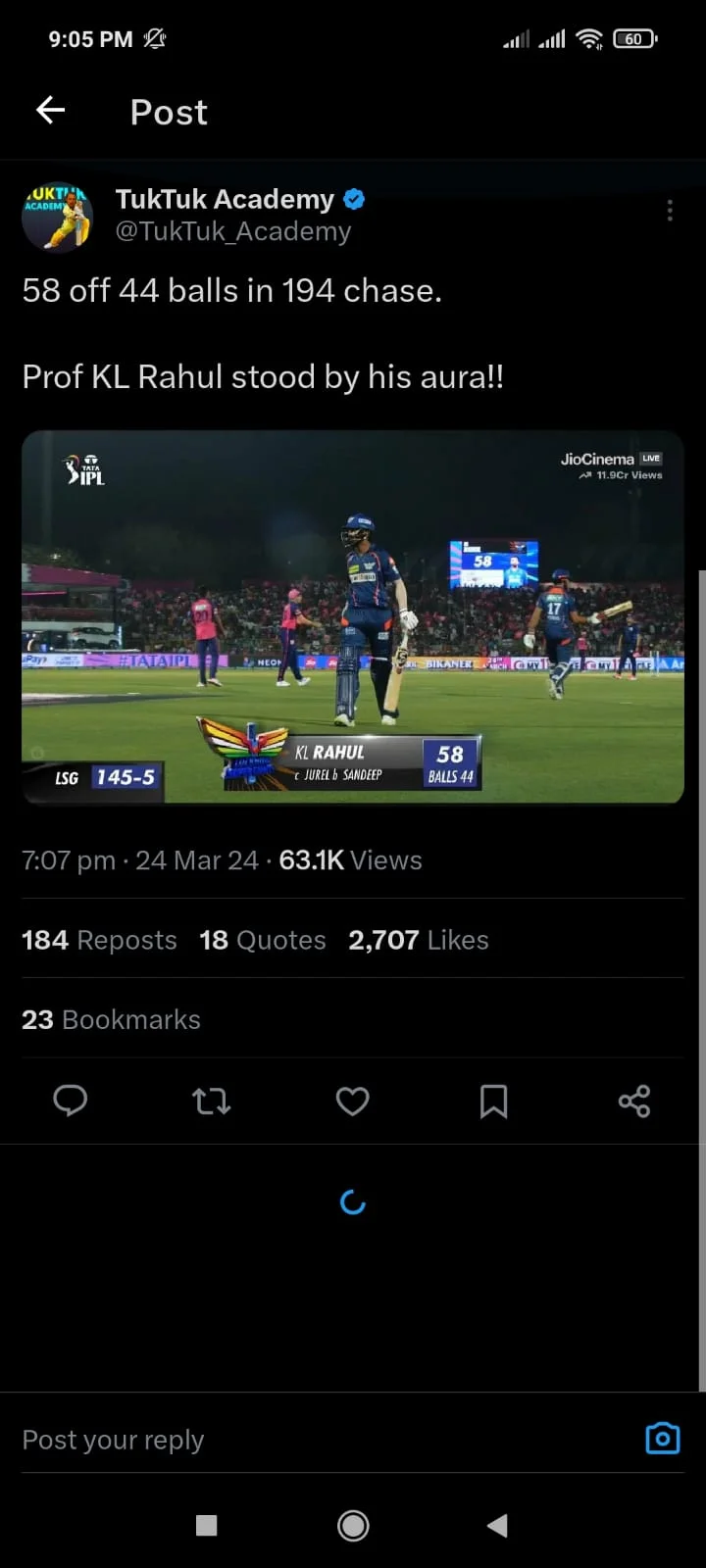 KL Rauhl got trolled for his slow innings vs RR: