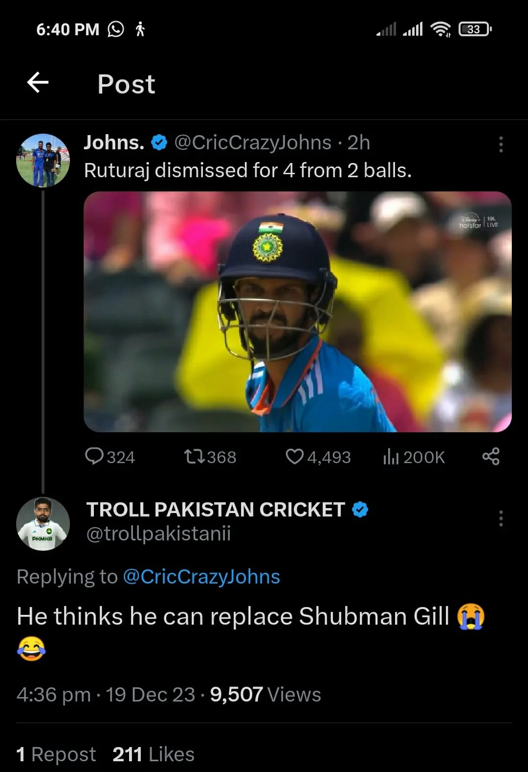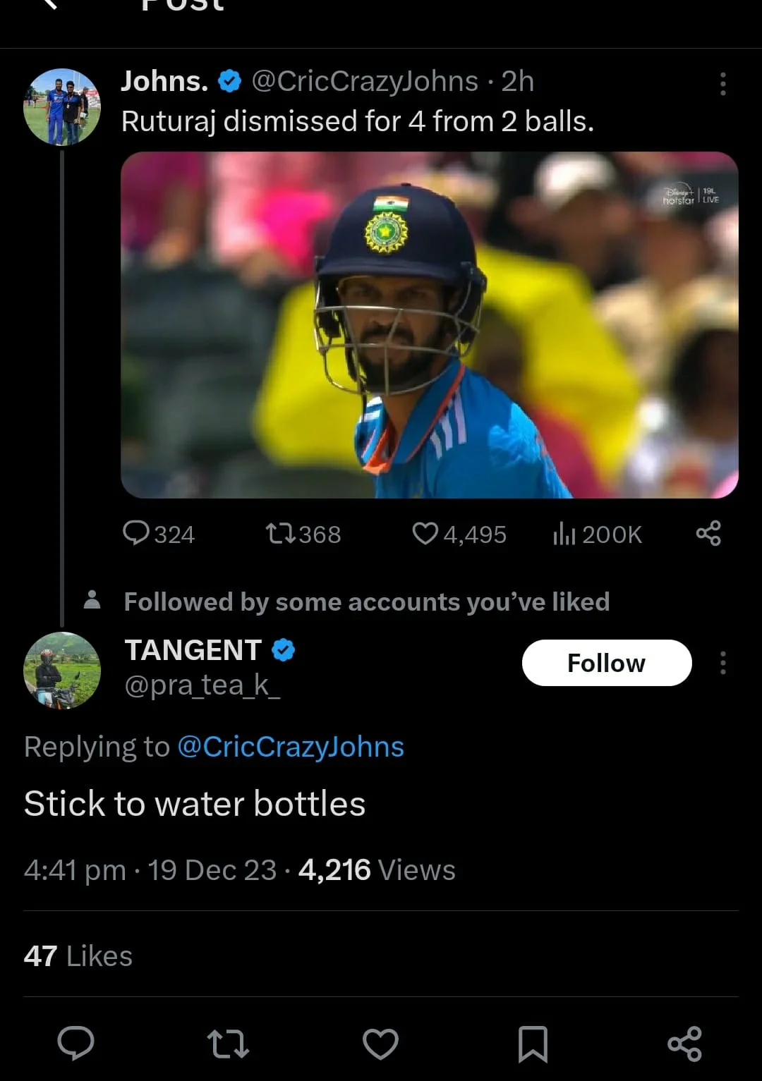 While the IPL 2024 auction occupied the minds and talks of the fans on Tuesday, Ruturaj Gaikwad got out for only 4 runs in the 2nd ODI vs South Africa and once again got trolled mercilessly with funny memes on social media.