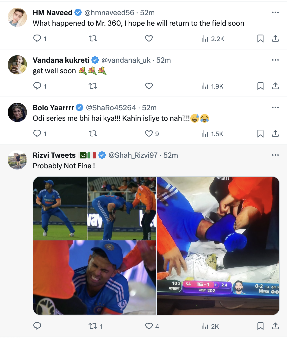As the excitement continued to build, an unforeseen incident cast a shadow over India’s triumph. Suryakumar Yadav, in a moment of fielding brilliance, suffered an injury while attempting to throw the ball back. It appears he may have twisted either his ankle or knee, forcing him to leave the field immediately. The sight of the captain wincing in pain outside the ropes raised concerns among the Indian contingent.