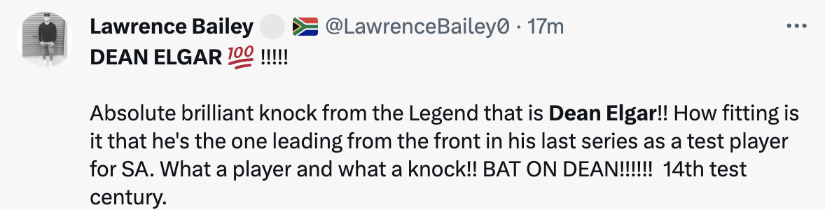 Dean Elgar’s century did not just resonate within the stadium; it echoed across the digital landscape as well. Fans from all corners of the globe took to social media to express their admiration for Elgar’s splendid performance. Social media platforms buzzed with excitement as cricket enthusiasts shared their views on Elgar’s masterful century, creating a digital ripple effect.