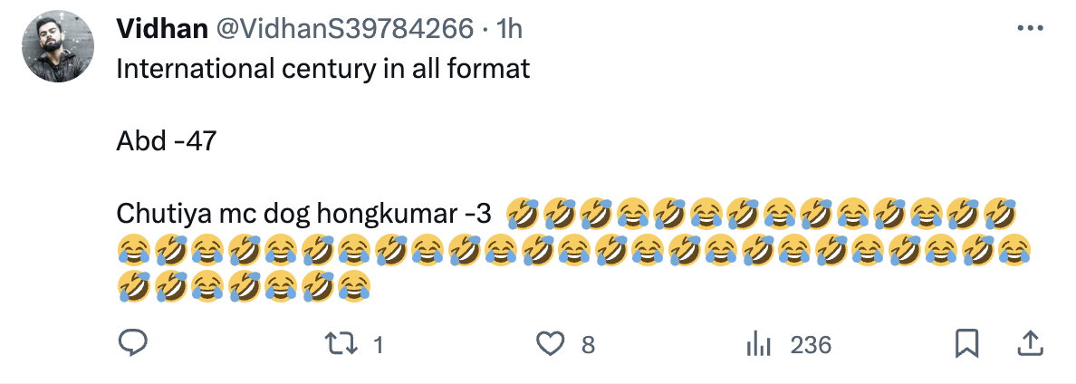 Suryakumar Yadav’s scintillating performance stirred up a social media frenzy, with fans taking to platforms to express their awe. One tweet in particular gained traction, highlighting Yadav’s remarkable feat of four 50s with a 150+ strike rate in T20Is in 2023 compared to AB de Villiers’ four such instances in his entire career. The tweet concluded with a cheeky nod to Yadav as the “Real Mr.369 SKY.”