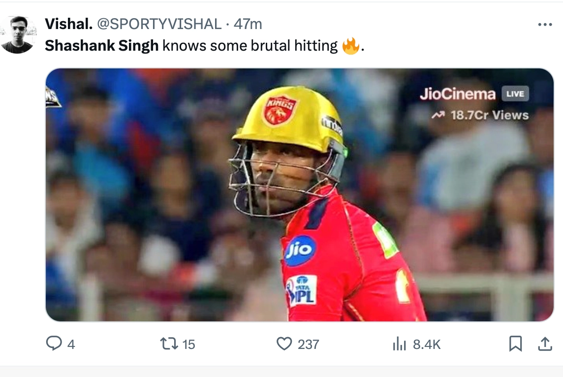 However, during the run chase, Shashank Singh truly stole the show in an exciting game. He attracted the focus go cricket fans with his remarkable performance. He made quite an entrance, stealing the spotlight with his unforgettable performance. Shashank Singh’s composure under pressure was truly impressive as he led Punjab Kings to a remarkable comeback victory.