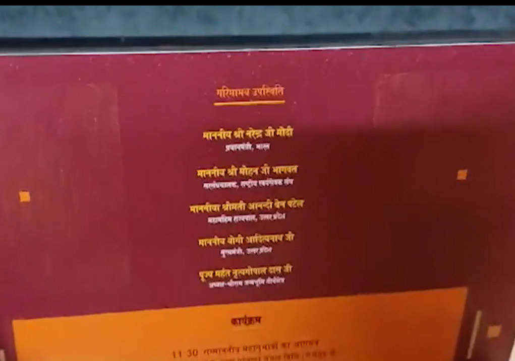 Opening the card reveals a meticulously documented account of the Ram Janmabhoomi movement and the key figures instrumental in its realization. Names like Prime Minister Bharat, Narendra Modi, RSS Sarsanghchalak Mohan Bhagwat, Uttar Pradesh Governor Anandiben Patel, Chief Minister Yogi Adityanath, and temple trust president Mahant Nritya Gopal Das take center stage, underscoring their pivotal roles in this monumental journey.
