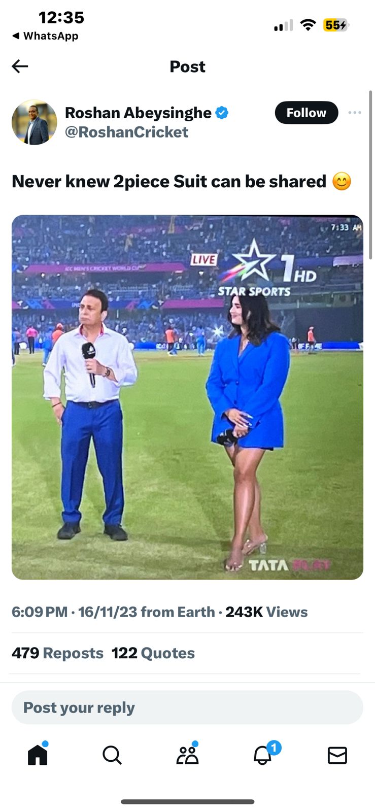 Amidst the intense match, a Sri Lankan journalist added a touch of humor to the proceedings by tweeting: “Never knew a 2-piece suit could be shared 😊.” The tweet quickly gained traction, triggering a wave of fan reactions expressed through a myriad of hilarious memes.