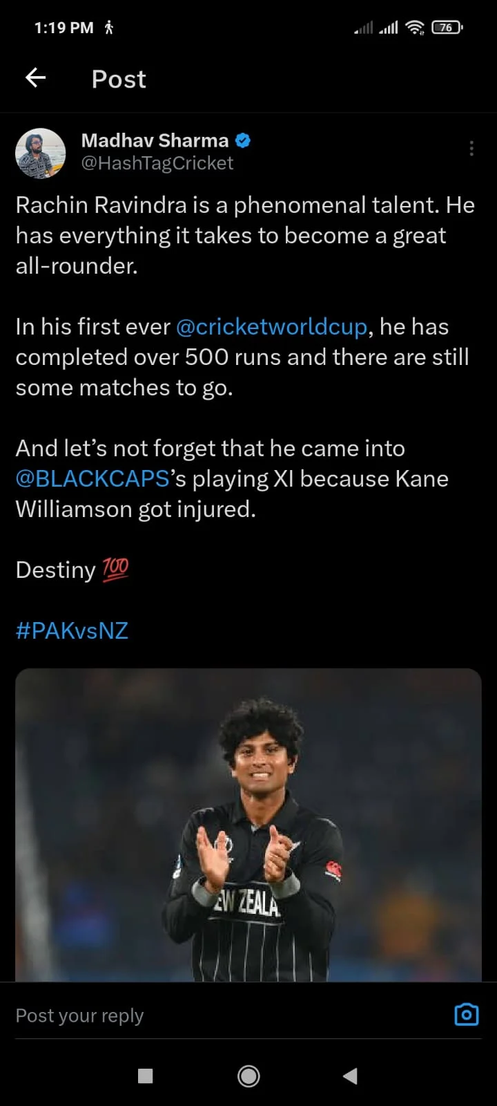 Twitter erupted with congratulatory tweets for young Rachin Ravindra on his century against Pakistan:
