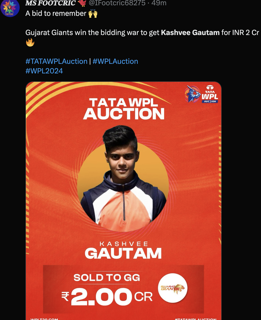 WPL 2024 Auction: Memes Galore As Uncapped Kashvee Gautam Was Sold To Gujarat Giants For INR 2 Crore