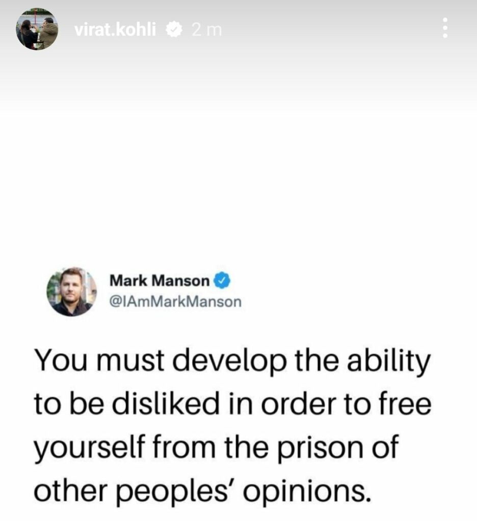 Virat Kohli seems to have made a reply to his trollers and critics via an Instagram story ahead of Day 3 of the WTC Final against Australia at The Oval.
