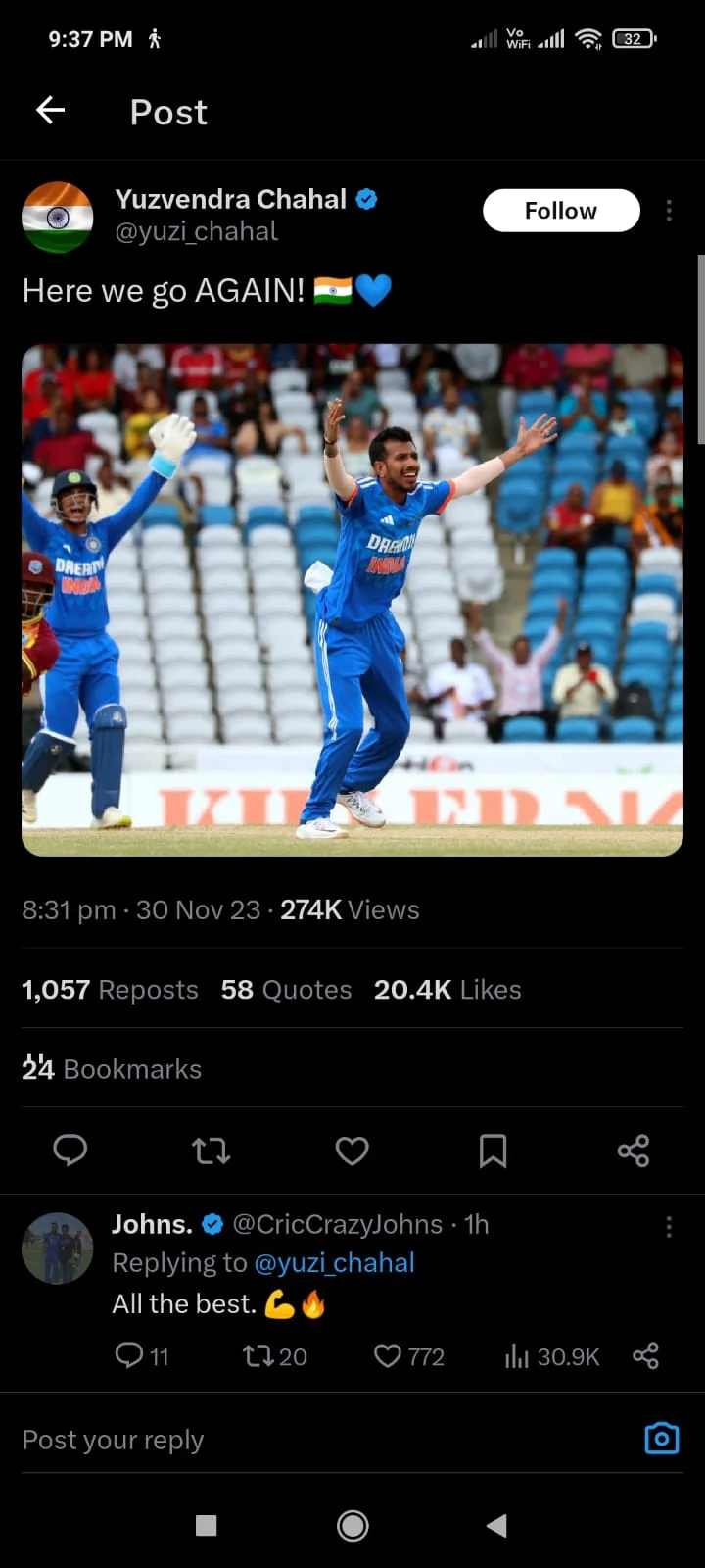 After his name was announced in the ODI squad, Chahal posted an epic tweet. He captioned: “Here we go AGAIN”